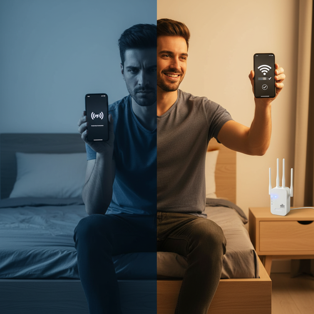 SignalBoost Pro™ features advanced dual-band technology, enhancing your wireless connectivity at home. Unlike typical boosters, it optimally amplifies 2.4GHz signals for improved speed and range, ensuring a seamless online experience for all your devices.