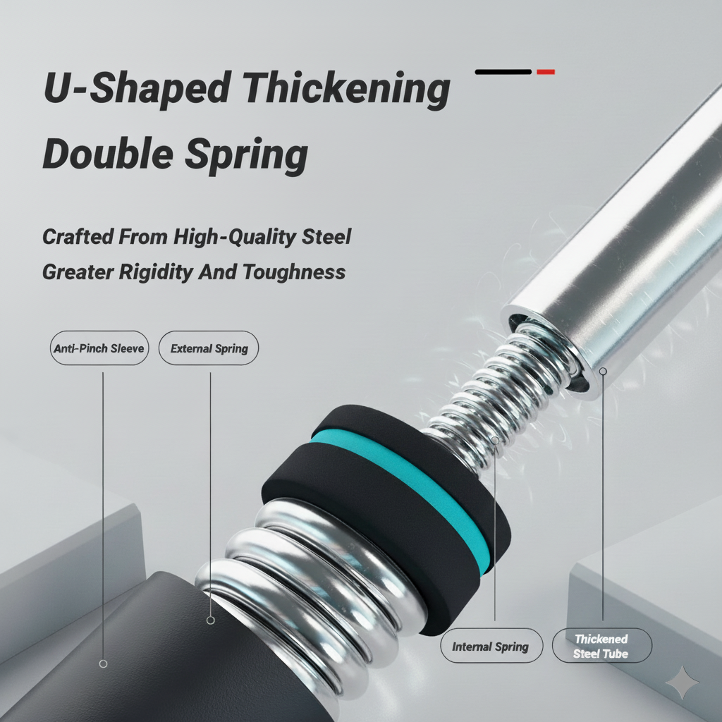 With 3 resistance levels ranging from 45–90 lbs (20–40 kg), it adapts to your fitness level and goals. Its ergonomic U-shape and wrist-friendly NBR foam grips ensure maximum comfort, while the heavy-duty steel frame guarantees long-lasting durability.